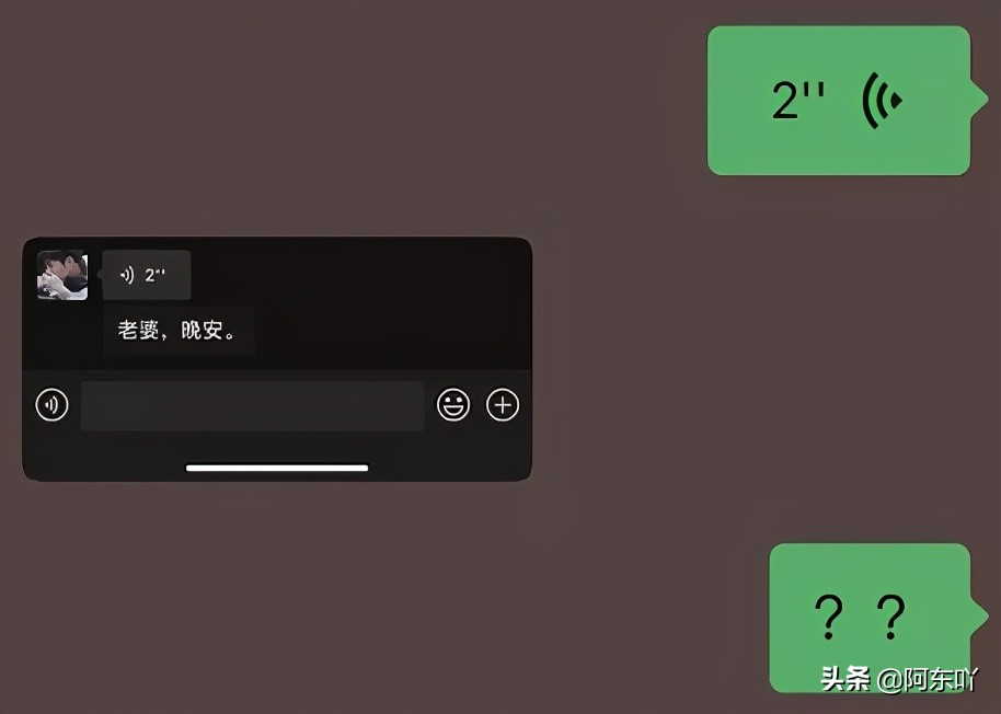 今晚临睡前和他说晚安,发了一段语音,内容是“XX(我对他的昵称),晚安”。