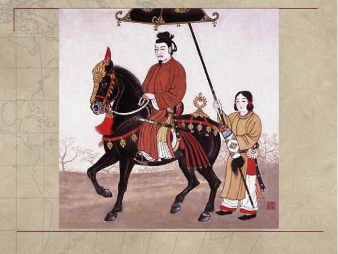 527年,磐井占据着九州岛的大片土地,并且挡住了远征朝鲜的一支6万人的皇室军队的去路。一年多以后中央政权克服极大的困难在一场激烈的战斗中制服了他。当然,磐井的事例只是个案,但是当时日本全国的状况大抵如此。中央政权不断地尝试推动这样一个理念,即地方权贵作为皇室的代理者甚至皇室的官员来执掌并统治地方。我们了解到早在534年就有大臣在讲话时引述中国的一则信条:“普天之下,莫非王土;率土之滨,莫非王臣。”尽管这则讲话可能是杜撰的,这则信条也肯定不是在这个时期传入日本的,但是这一理念不断成熟,皇室也会抓住每一个可能的时机践行这一理念。