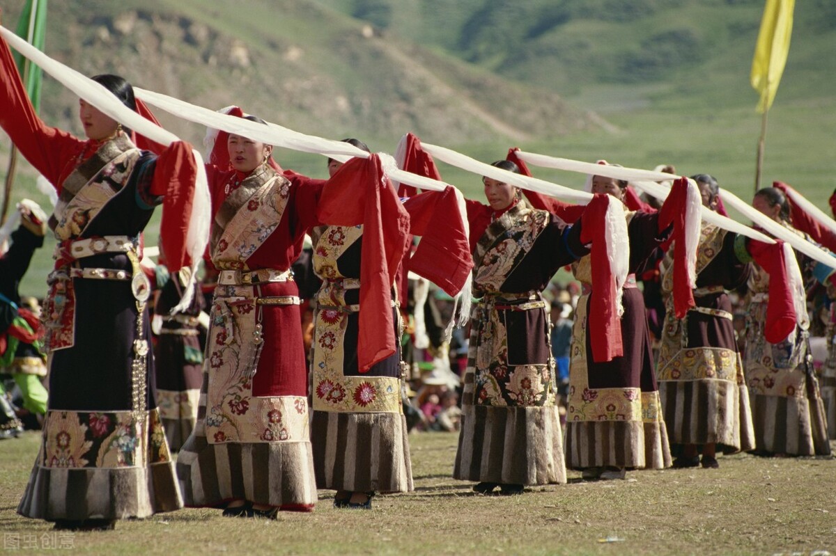 藏族是青藏高原上的原住民,藏族歌舞和藏戏独具民族特色,敬献哈达是表达对客人最崇高的欢迎和诚挚的敬意。
