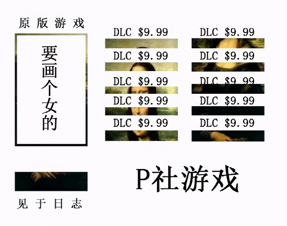 而到后来,简单的DLC都不够游戏厂商卖了,为了最大限度的榨取游戏利益,一些游戏开发商甚至选择将游戏拆开来卖,将部分原本是应当游戏本体的内容放到DLC里单独发售,以这种方式来增加游戏营收。对于这些游戏产品,如果不购买DLC的话,玩家在游玩本体的时候可以明显的感觉到游戏内容的不完善,比如开头所提到的P社游戏。