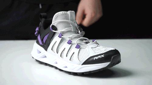 比如说,为了照顾国人的脚型,RAX特意选用了带有弹力的三层网做成鞋背,高脚背、胖脚丫的朋友穿它也不容易压脚,保障舒适度。