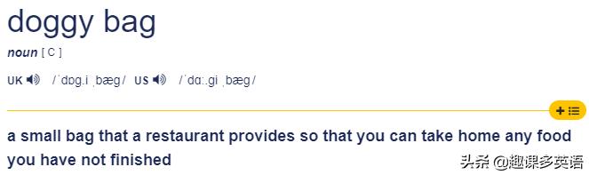 所以,doggy bag的意思,也就是“打包盒、打包带”。