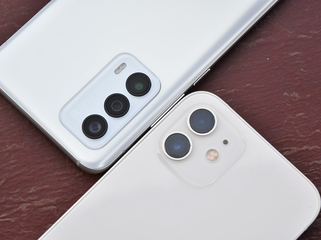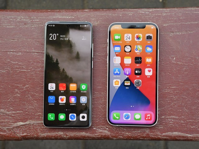 左边为魅族 18,右边为iPhone 12,首先两款手机在细节方面的表现无可挑剔,差异主要集中于色彩方面,两者调教会有轻微差异。