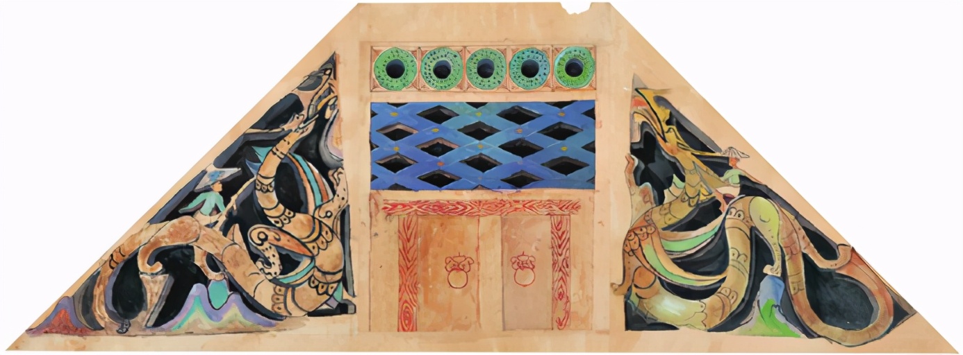 《洛阳两汉彩画》洛阳烧沟M61雕刻避门砖画摹本