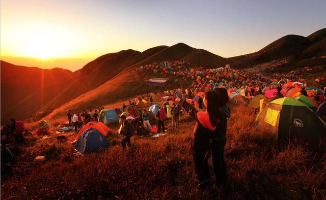 夏天武功山可能有上千顶帐篷在山上露营,从一些航拍照片看来,高山草原上一片五颜六色的帐篷给武功山增添了一种风光,当你露营徒步感受到的是云中草原、早晨日出、傍晚的日落日落、云海、浩瀚星空惊艳到,一年四季都有不一样的风景,有不一样的个性。