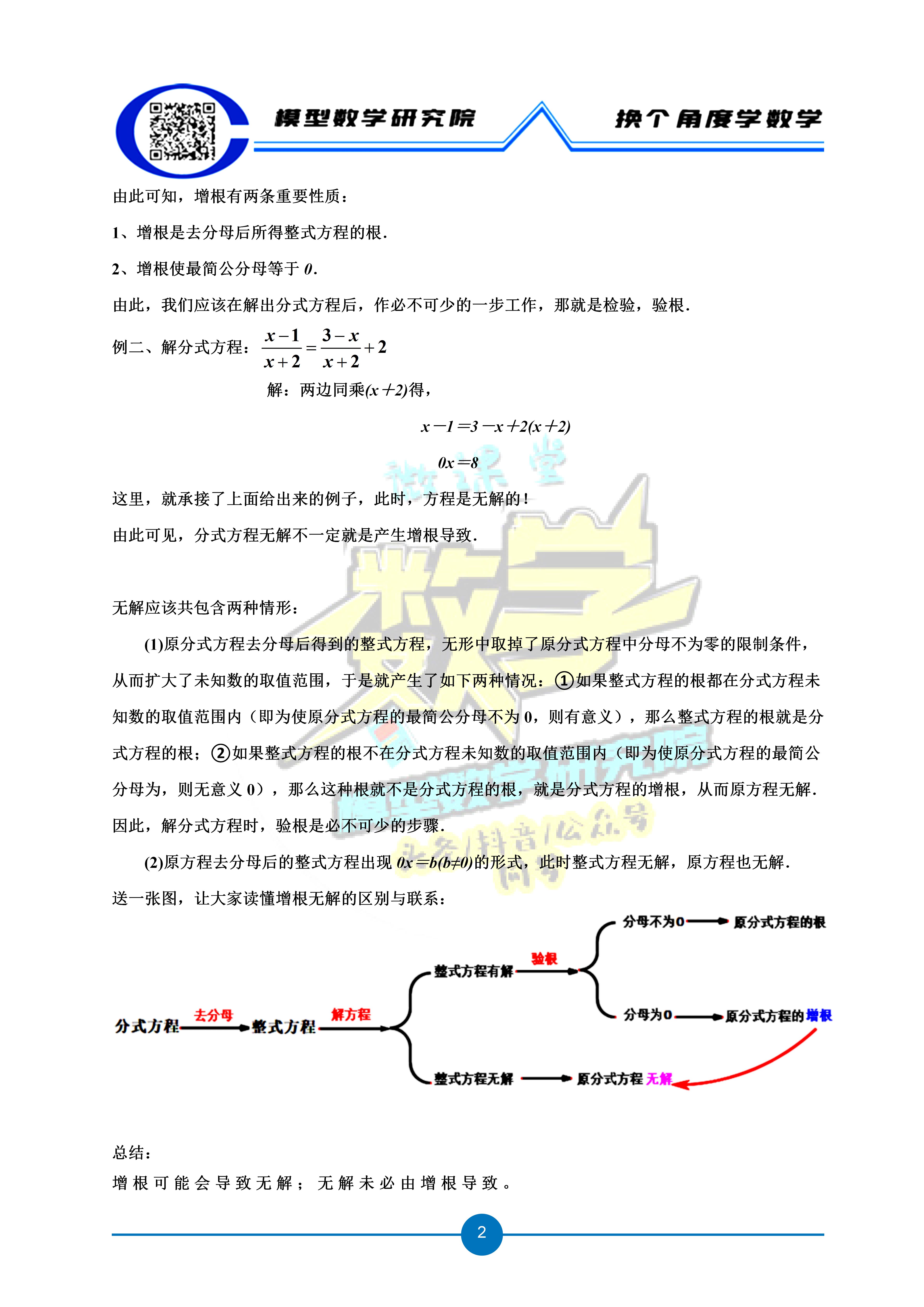 【关于整式方程无解的问题,请各位同学记住一个例子:】