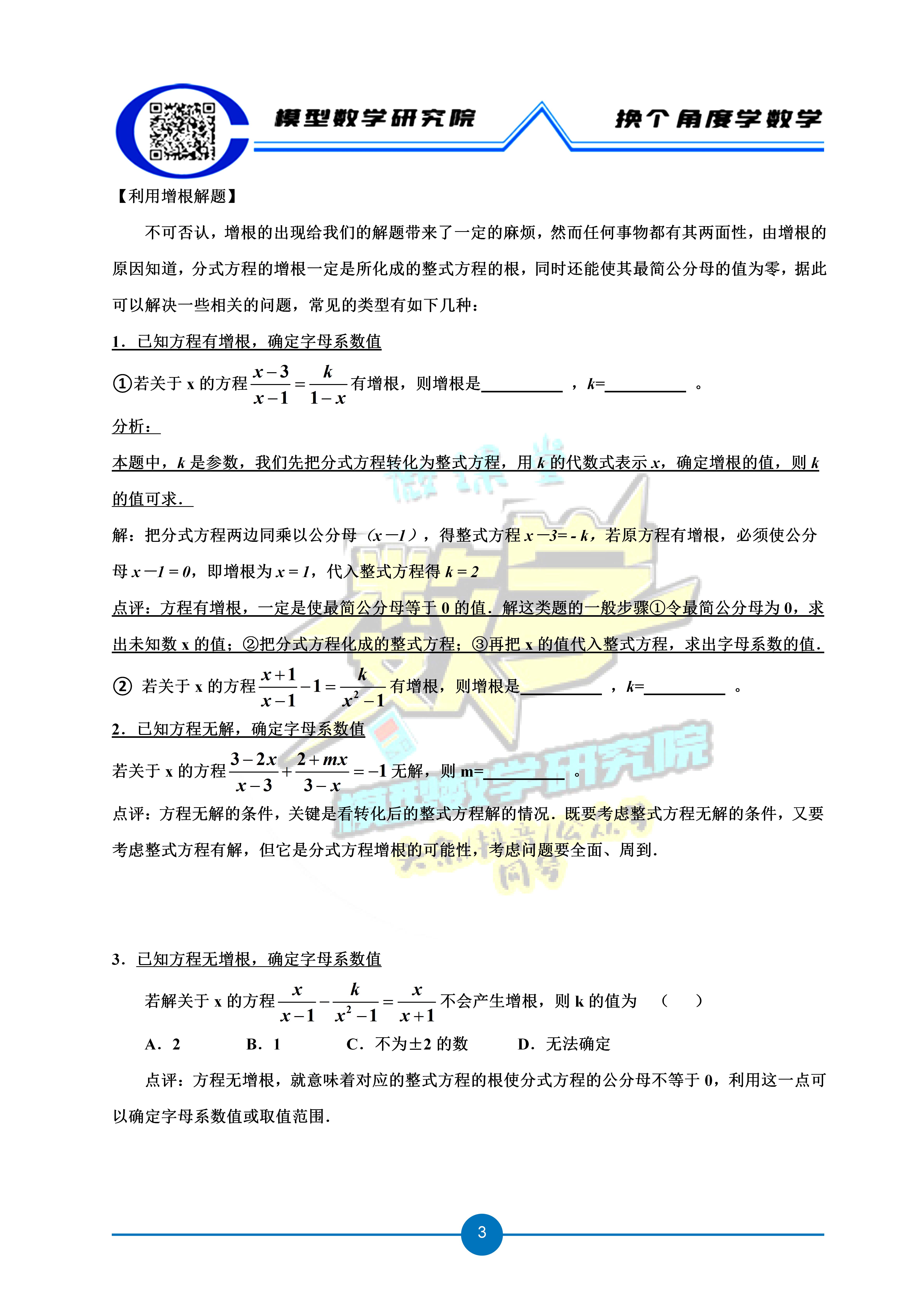 由此,我们应该在解出分式方程后,作必不可少的一步工作,那就是检验,验根.