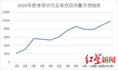 在投诉的具体数量上,黑猫投诉平台的数据显示,2020年教育培训行业的投诉量呈现逐月剧增情况,于12月份达到峰值,有效投诉共9882单,其中中公教育、聚师网、尚德机构投诉量最多,三家占12月行业总投诉的4成之多,另外本月学霸君宣布资金链断裂,也使其投诉量大量增加。