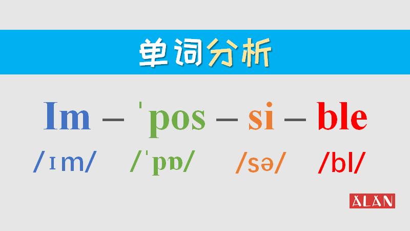 上面四个音节的发音,我们来复习一下吧!im-pos-si-ble,重读在第二个音节上哦~