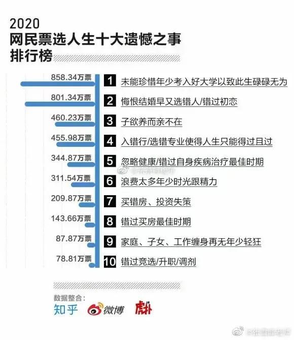 最后给大家分享2020年度网民票选人生十大遗憾之事排行榜: