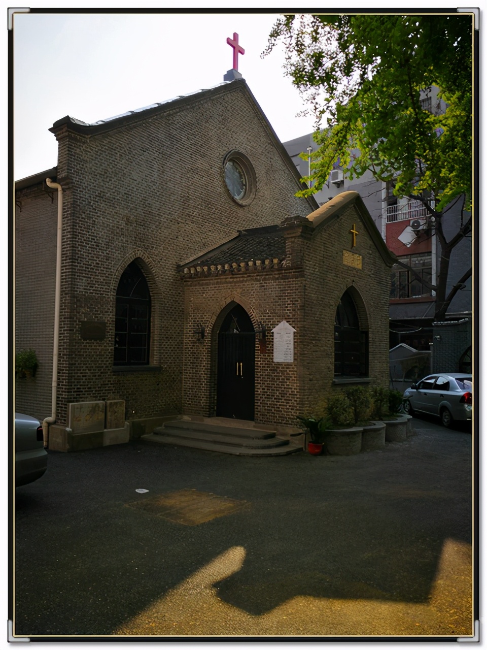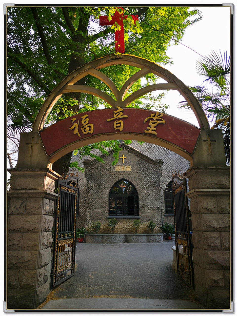 不经意间走到了大西路,浓荫下有一座基督教堂:福音堂。阳光下,红色的十字架很是显眼。镇江作为中国古老的开放城市、重要的经济文化中心,也是基督教传入较早的地区。早在公元13-14世纪的元代,基督教就已经在镇江传播。