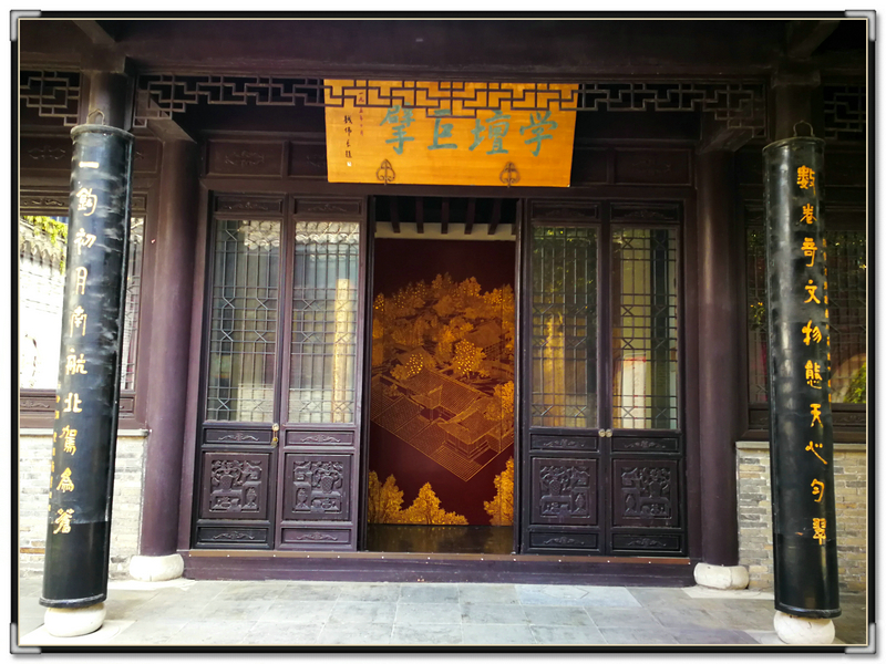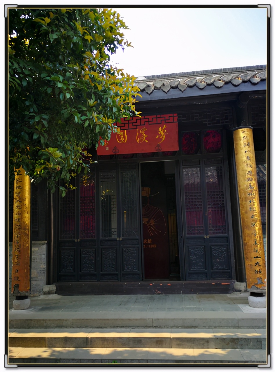 南屋横匾“学坛巨擘”由钱伟长题写。楹联“数卷奇文物志无心匀翠墨;一钧初月南航北驾为苍生”,这两幅对联高度概括和评价了沈括的一生。