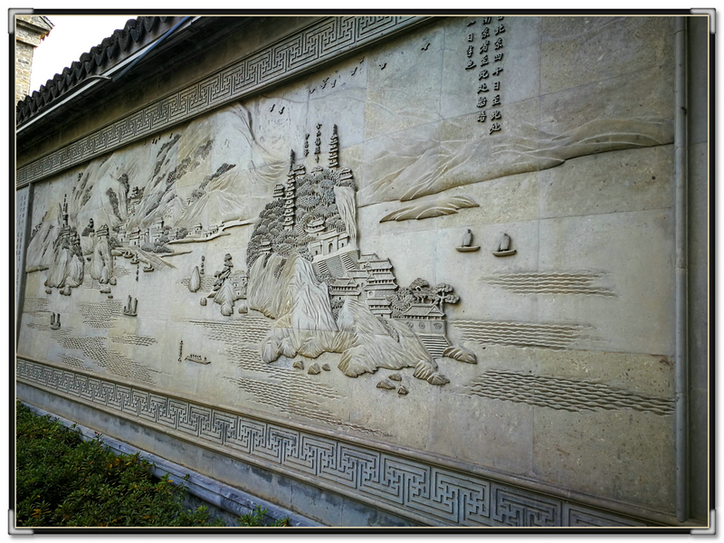 在蒜山游园的墙上有一巨幅石刻画,那是1469年日本高僧,著名山水画家雪舟创作的一幅画《唐土胜景图卷﹒镇江全景》,真实地反映了金山寺的盛景,特别是西津渡码头的繁华。这幅画现藏于京都国立博物馆,成为日本的顶级国宝。