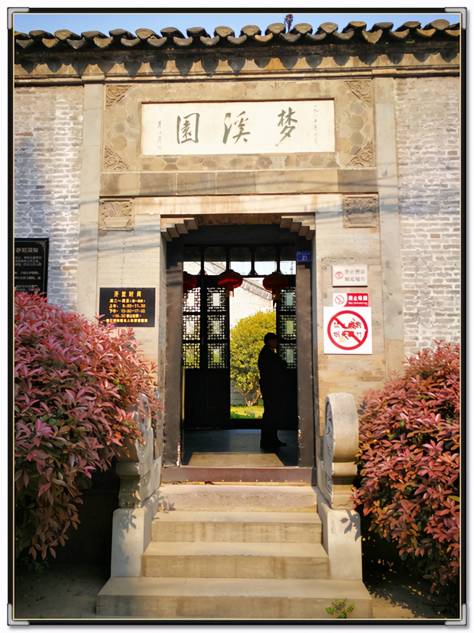 现在的梦溪园由两进六间青砖平房和一方小庭园组成,园门上端,是镇江籍著名桥梁专家茅以升题写的石匾&34;梦溪园&34;三个大字,苍劲有力。