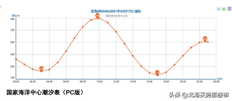 如果打算在北海购买海景房,也可以跟着潮汐表去看房。建议在高潮位的时间去看看,在低潮位的时间也去见见。一来一往、一涨一退,大海的味道就出来了。