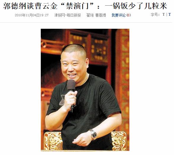 据说当时媒体都来了一堆,可当天下午曹云金并没有出现在舞台上,随后便传出了曹云金被禁演的消息。曹云金也在媒体上血泪控诉老郭,说老郭打压他,故意不让他演出,被老郭逼得走投无路了。
