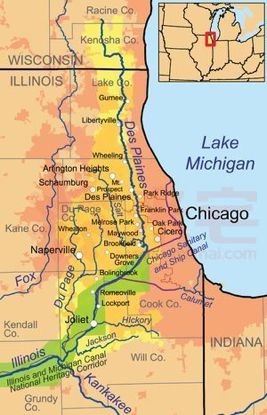 从地理位置上看,芝加哥位于密西西比河支流与密歇根湖交汇处,背靠五大湖区,域内河流众多,同时地势平坦,形成了密集的水陆交通线路。