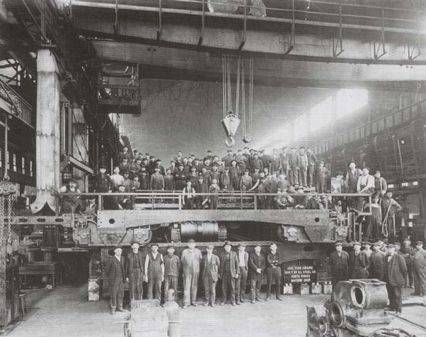 图为钢铁工人在芝加哥南方工厂的合影,在鼎盛时期,这家工厂雇佣了2万人。图源:维基百科