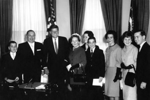 图为时任美国总统的肯尼迪在白宫接见戴利家族。图源:白宫官网