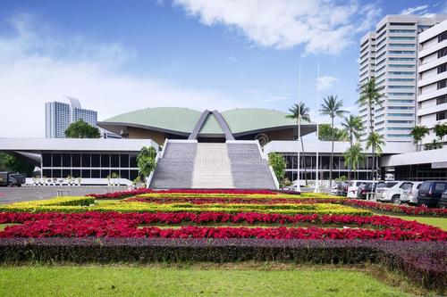 人民协商会议大楼前的建筑和花坛