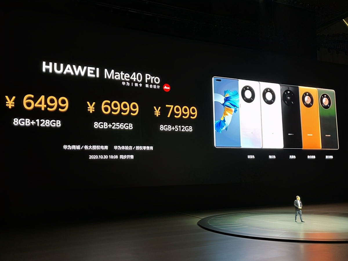 售价方面,华为Mate40 Pro共有8GB+128GB、8GB+256GB、8GB+512GB三种存储版本,价格分别是6499元、6999元、7999元;华为Mate40 Pro+仅有12GB+256GB一种存储版本,售价和元8999元。