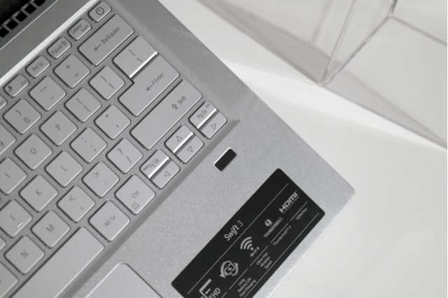 键盘区域的右下方,宏碁非凡S3还拥有一个指纹识别器,配合WindowsHello使用登录系统,可免除手动输入密码,既方便又可以满足安全性。