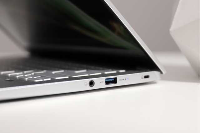 作为符合英特尔Evo平台认证标准的轻薄本,宏碁非凡S3自然是有着强大的连接性,机身右侧提供了1个3.5mm音频接口、1个USB3.2Gen1接口。