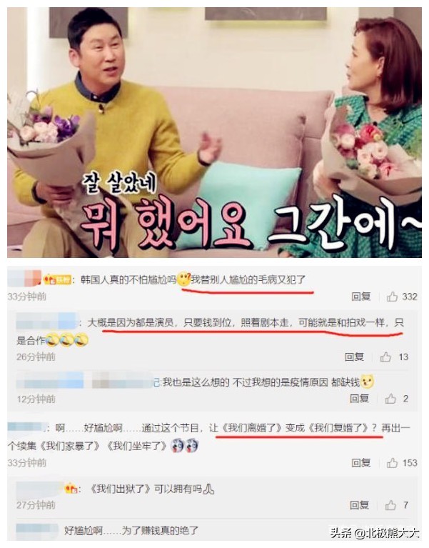 也有网友认为这个节目隔着屏幕都能感觉到尴尬了,难道他们自己感觉不到尴尬吗?简直就是毁三观,韩国综艺真敢拍。