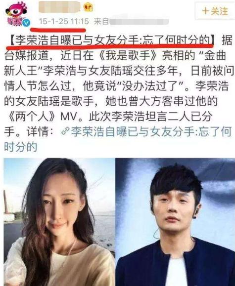 当然,为了杨丞琳,李荣浩便与女友陆瑶提出了分手。