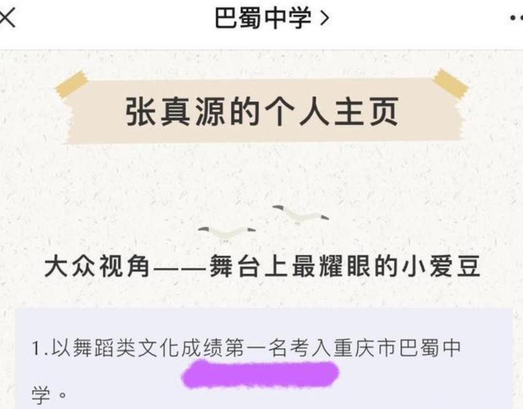 而张真源本身就是以舞蹈类文化第一的成绩成功考入重庆重点中学巴蜀中学的,相信不出意外,张真源上中戏也是稳的。