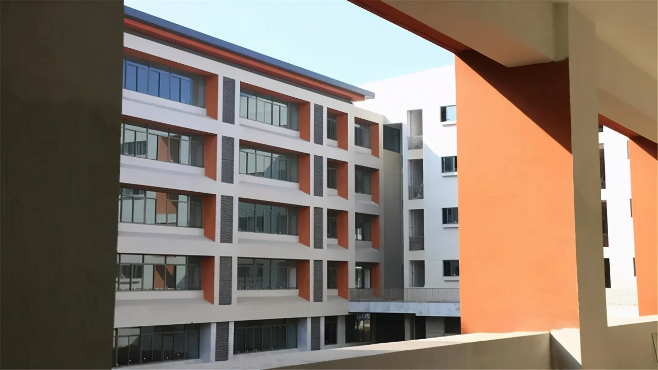 它的整个校园的规划建设都十分人性化,并且布局还是经过了合理安排,总建筑面积大约为8.7万㎡,总体上大约分三个区,分别是教学区,运动区和生活区,教学区在学校的中部地区,在教学区设置了三栋教学楼,这三个教学楼是前后排列的,每个教学楼都有五层,这份学习教室的话一共是有78个教室,三栋楼单独成栋又互为一体,在教学楼里还有音乐教室,美术教室和信息技术教室等设置。