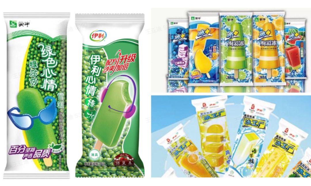 伊利、蒙牛这两个乳品巨头2000年代在冰淇淋产业也成为了“死对头”,只要伊利有的雪糕,蒙牛就一定会有同款,而且包装极为相似:伊利推出伊利牧场小布丁,蒙牛就推出蒙牛布丁雪糕;伊利推出冰工厂,蒙牛就推出冰+;蒙牛推出绿色心情,伊利就推出伊利心情……