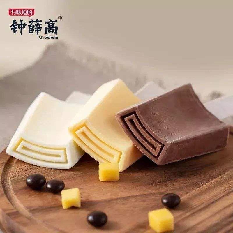 当下网红雪糕界的老大当属钟薛高。根据钟薛高的创始人林盛的说法,钟薛高的名字来自“中雪糕”谐音,瓦片外形代表中国的青瓦白墙,“回”字形代表回归食物本源的味道,特殊的造型有很高的辨识度。