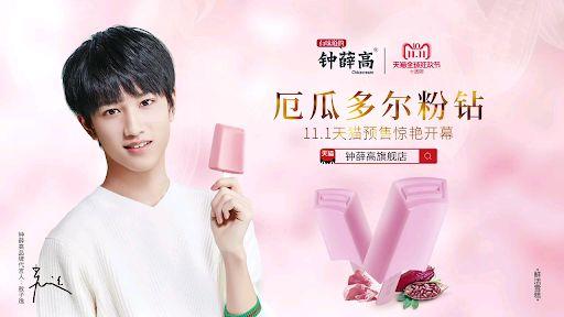 像钟薛高的三位品牌代言人就分别是TF家族的敖子逸,以及演员佟丽娅和周一围,三位艺人的形象都比较积极健康,契合钟薛高主打的健康路线,启用17岁的敖子逸做品牌代言更是针对00后市场的一次开拓。