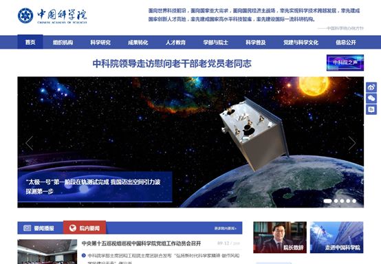 公众访问中科院新版网站,将感受到显著的媒体融合特色。此次改版在网站首页展示公众喜闻乐见的“短视频”内容并在顶部显著位置设置了“中科院之声”融媒体(包括微博、微信、短视频)集合页面入口。