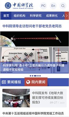 在欢庆新中国成立70周年和中科院即将迎来建院70周年之际,中科院官方网站(www.cas.cn)进行了改版并于9月30日上线。