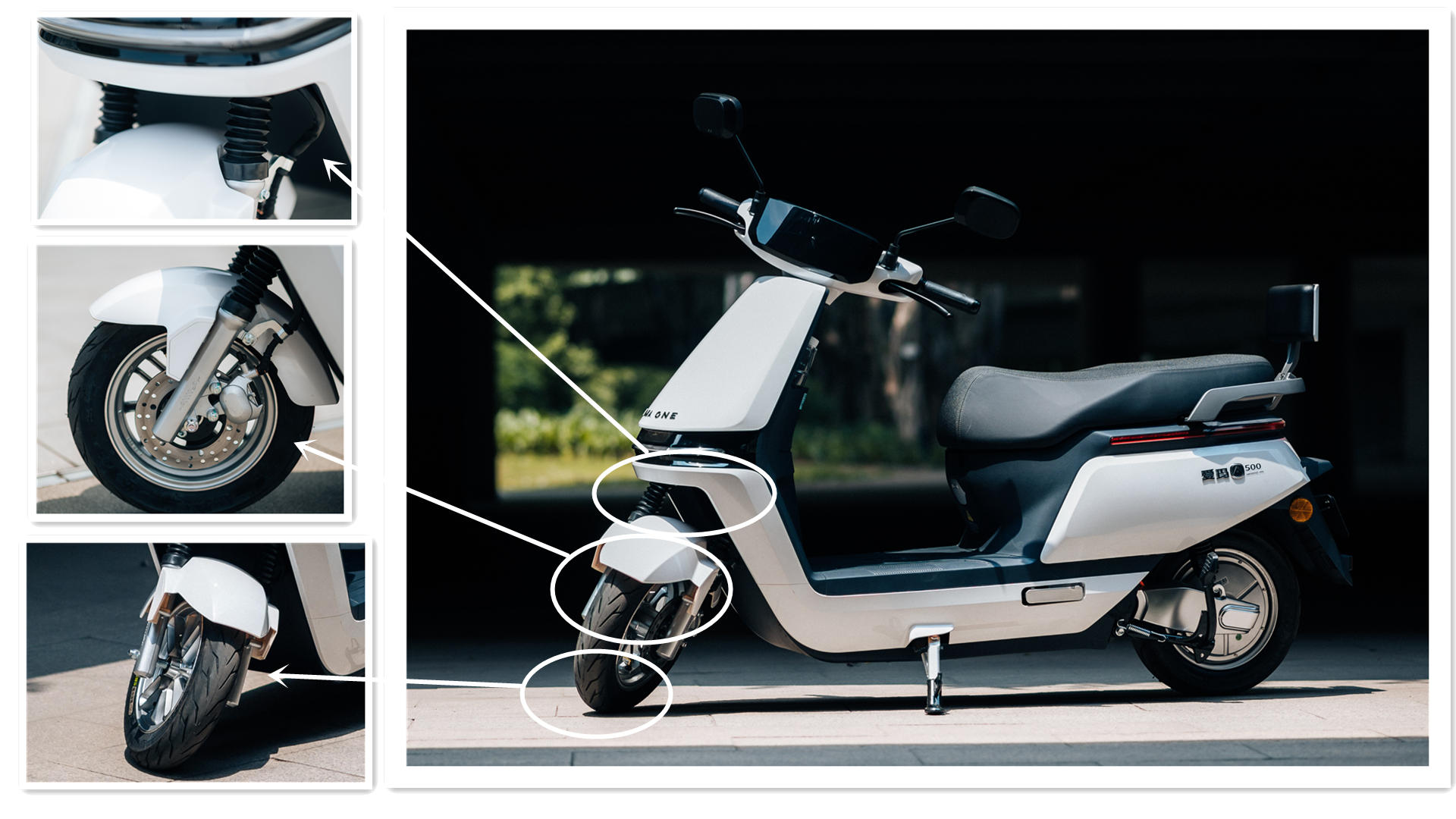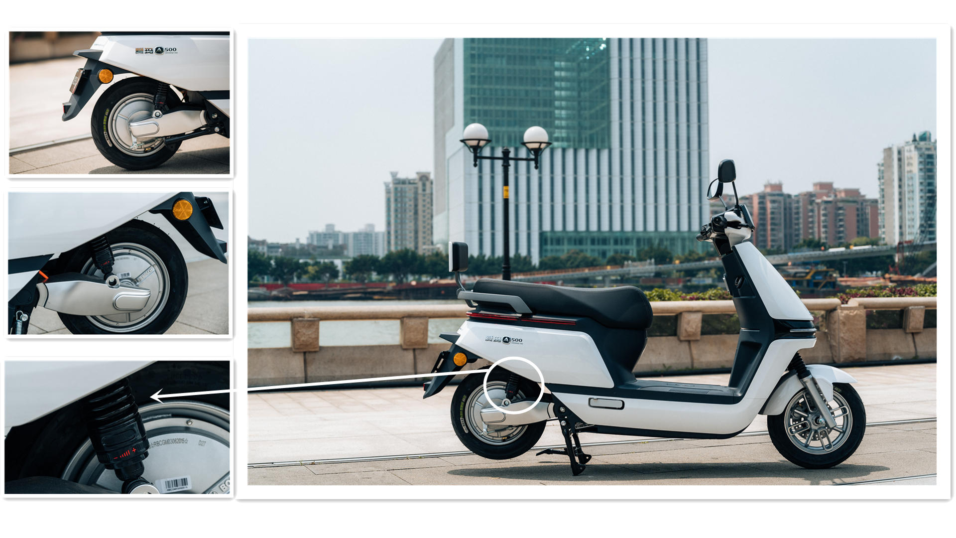 而且爱玛还考虑到用户有可能会出现长时间驾驶会有疲惫感的问题,所以在A500的车头上还做了一个27°的倾角设计,使得A500在坐距、握距、腿部呈现最佳比例,让用户即使是长时间的乘坐驾驶,也不会觉得劳累。同时前减震的减震效果达到了5级,可以有效的减缓过减速带或者坑洼路段的颠簸问题,轮胎上也采用了低滚阻轮胎技术,让A500的行驶体验更加的舒适。