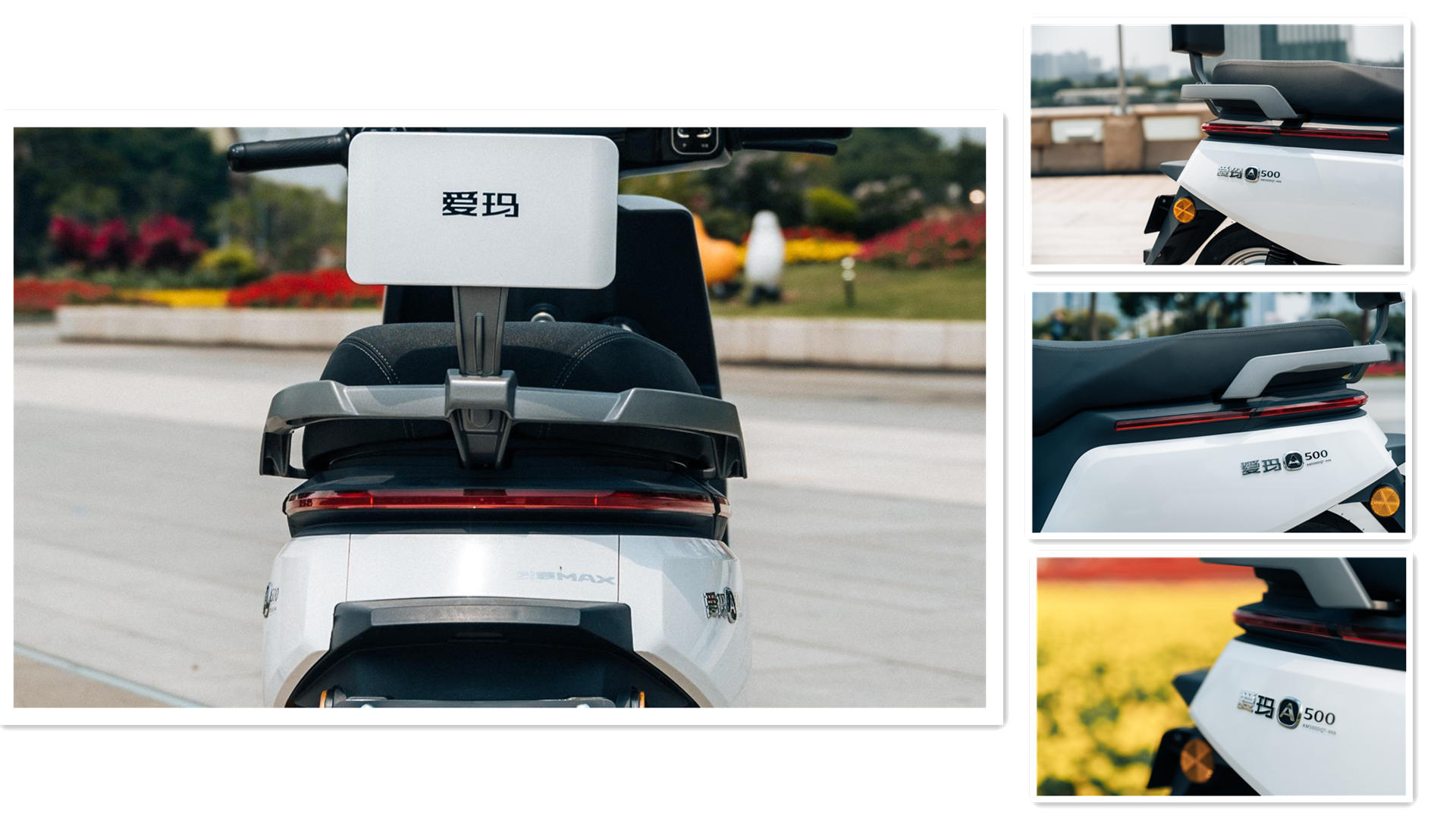 从后往前看,你会看到爱玛A500的车身腰线十分的层次分明,车身的轮廓十分的具有雕刻感,给人一种动感十足的感觉。