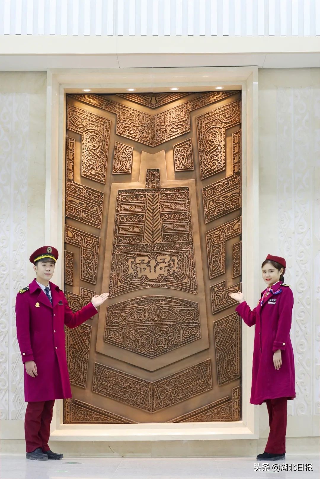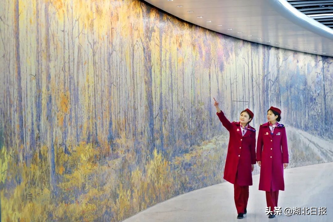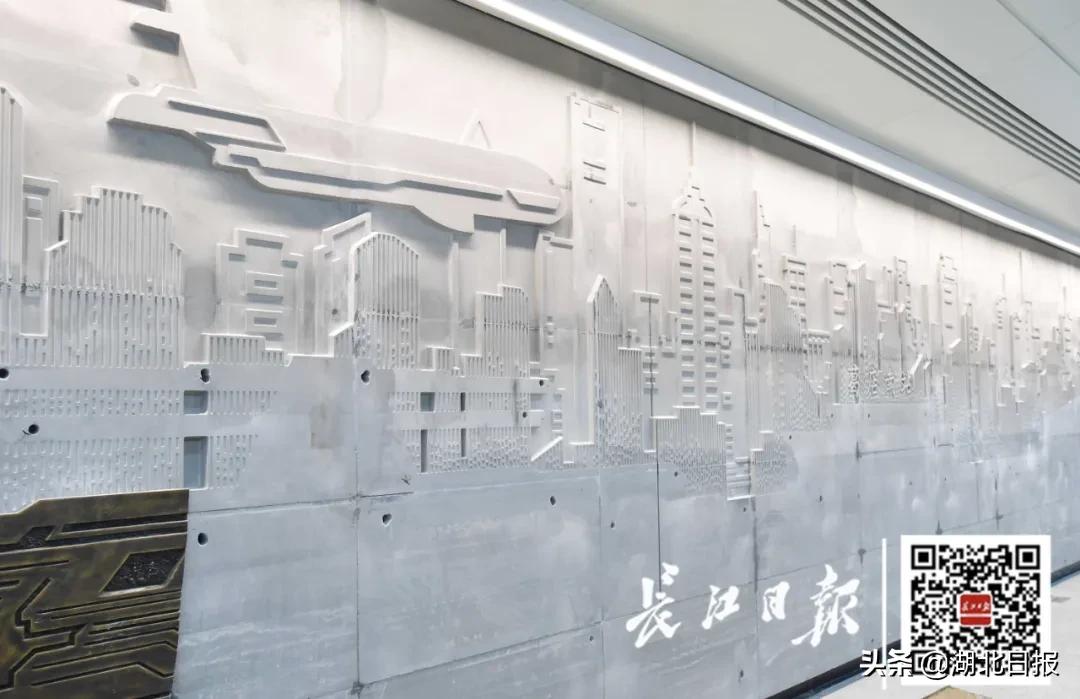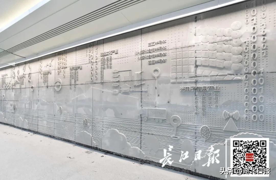 站内最引人注目的,是厅层两侧的6面艺术墙,以“历史-现在-未来”为脉络,从文卫事业、人文景观、历史名人、生态环境、经济发展、科技进步等角度阐述鄂州的地方特色,让人行走其中,就能一览鄂州的文化、经济风采。