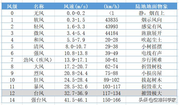 风力对照表