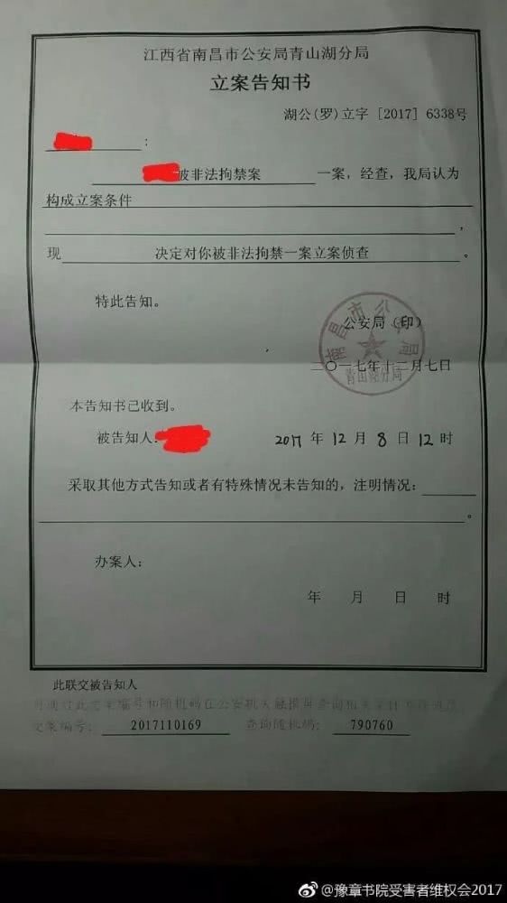 2017年,南昌市公安局已经对吴军豹非法拘禁立案侦查。