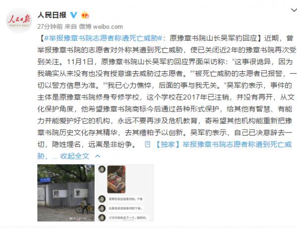 10月29号,网友@温柔发布了一条名为《当事人告诉你豫章书院事件的完整始末》的视频,控诉豫章书院创始人吴军豹,两年来对自己和志愿者们进行报复。