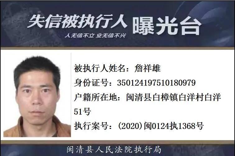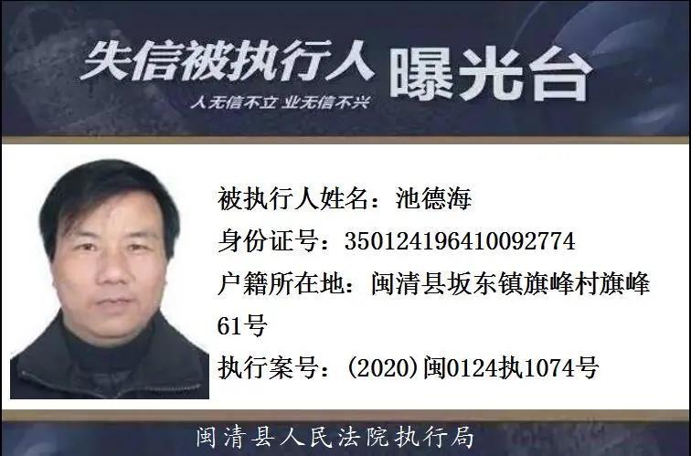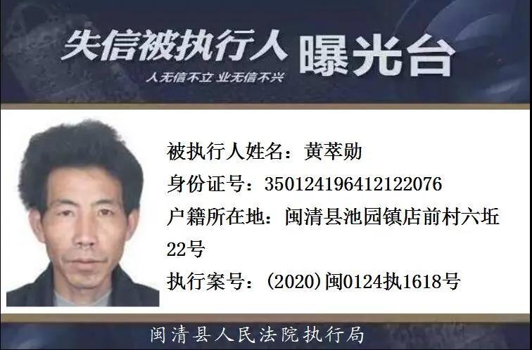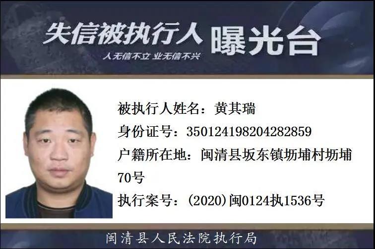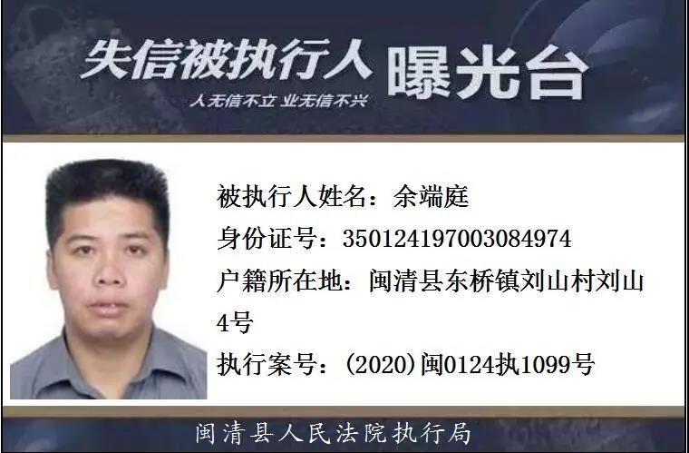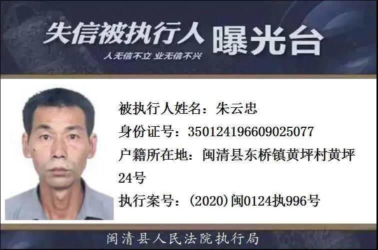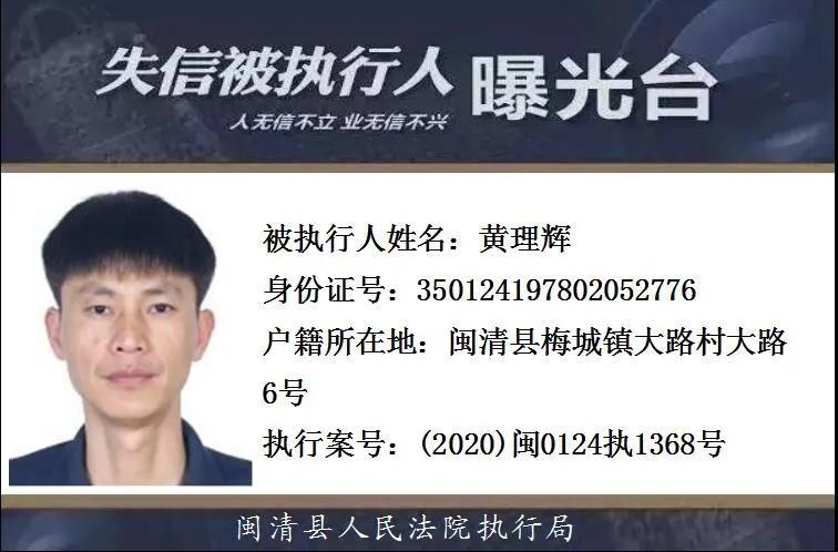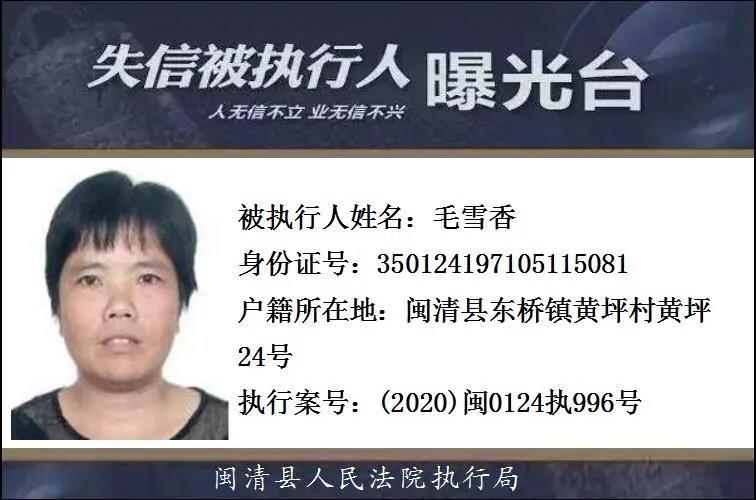 闽清县人民法院发布失信被执行人名单