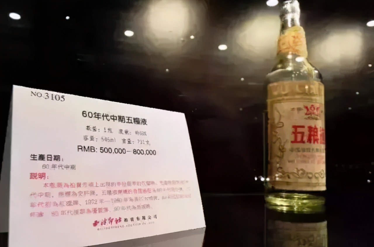 2012年1月2日,在杭州举办的西泠印社2011秋季拍卖会陈年名白酒专场上,这瓶酿制于20世纪60年代五粮液被拍出98万元人民币的高价,创单瓶五粮液拍卖价格新高。