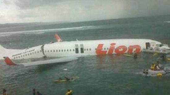 2013年4月13日,印尼狮子航空,一架波音737-800于印尼巴厘岛降落时堕海,机身断开两截,所幸机上所有乘客获救。