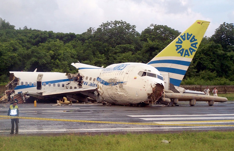 2010年8月16日,哥伦比亚航空,一架波音737-700于哥伦比亚圣安德烈斯岛准备降落时遭到雷电击中,机身断成三截,坠落跑道上,1人遇难,130人受伤。