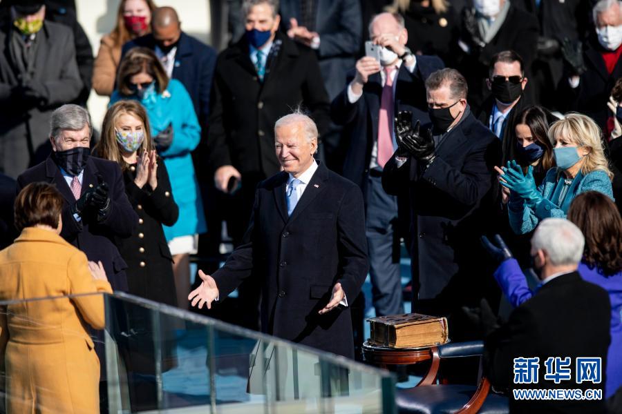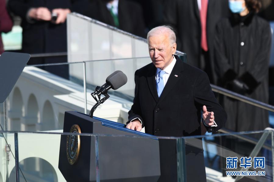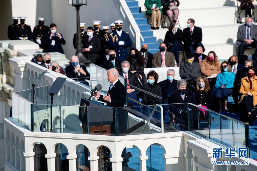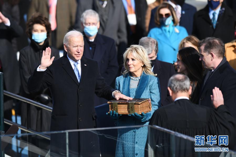 当日,美国当选总统、民主党人拜登在华盛顿国会山举行的就职典礼上宣誓就任美国第46任总统。