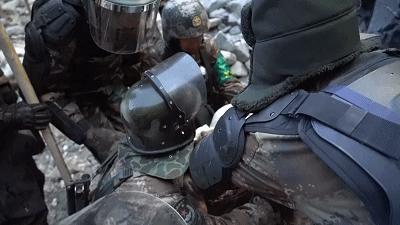 增援队伍及时赶到,但看光线,应该已经是黑夜了。