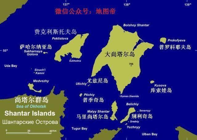 ④尚塔尔群岛,是鄂霍次克海西部的一个群岛,原属中国清朝吉林将军管辖,中国人称之“格布特岛”,系外东北的一部分,清咸丰年间被沙皇e国侵占。