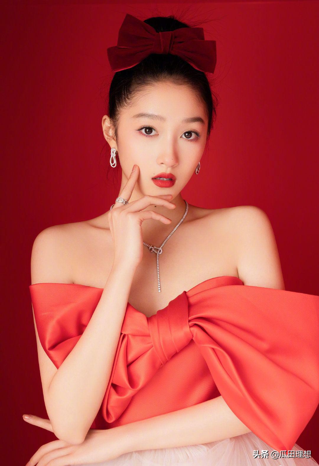关晓彤的“跨年”动态则是晒出了一组近照,红色发带、红色抹胸裙、红色背景,显得颇为喜庆。